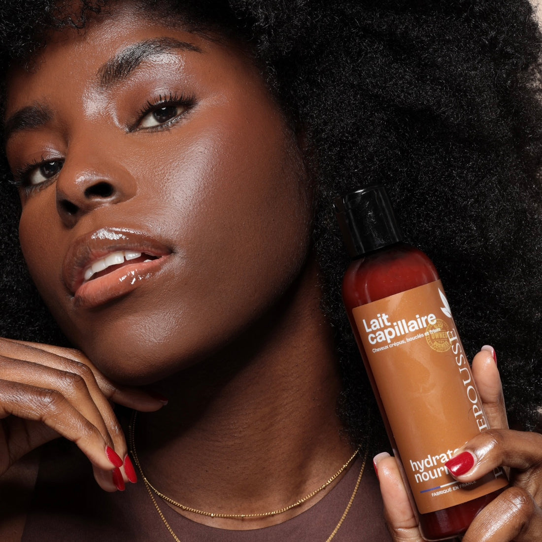 Ce lait hydratant et démêlant est parfait pour les cheveux crépus, frisés et bouclés secs, cassants et difficiles à démêler.